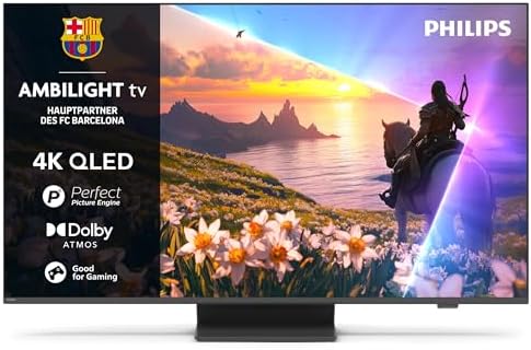 Philips Ambilight 55PUS8600 4K QLED Smart TV – 55 Zoll Display mit P5 Perfect Picture Engine Ultra HD, Titan OS, Dolby Vision und Dolby Atmos Sound